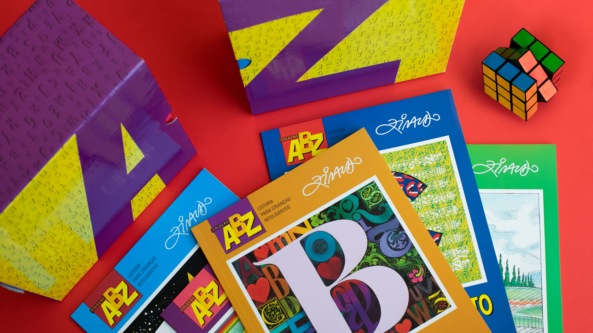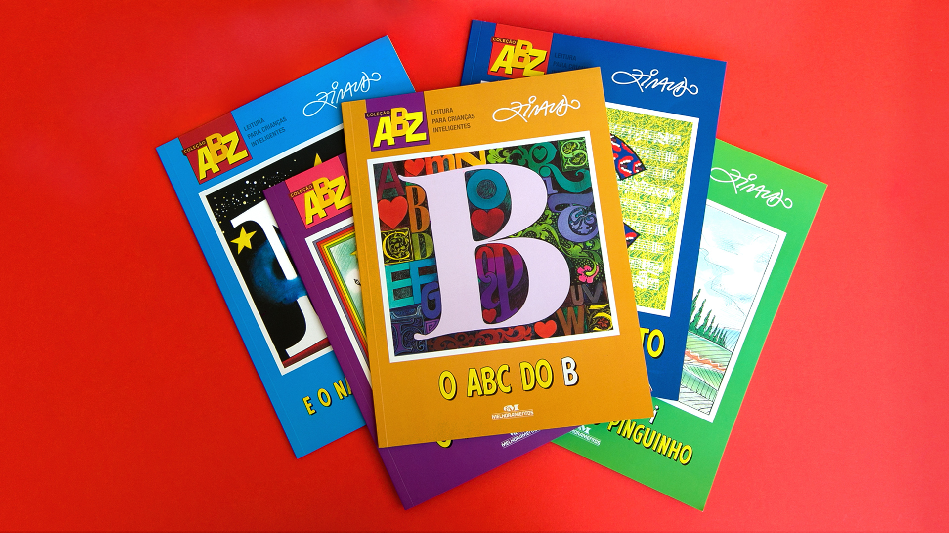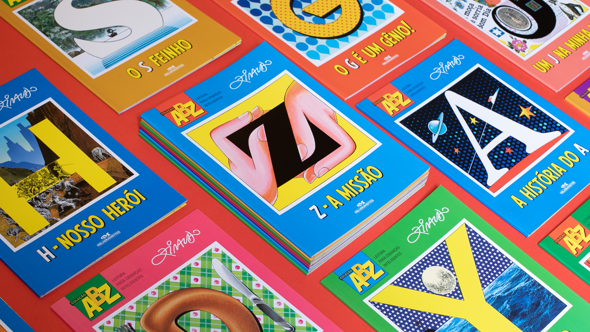 Fomos convidados para desenvolver a reformulação da Coleção ABZ, juntamente com Ziraldo e a equipe editorial da Editora Melhoramentos. O trabalho contemplou a criação de um novo projeto visual e a atualização de todas as artes. A nova coleção valoriza as ilustrações e a inclusão de mais cores nas páginas para potencializar as histórias e estabelecer um ritmo de leitura convidativo, imersivo e alegre.