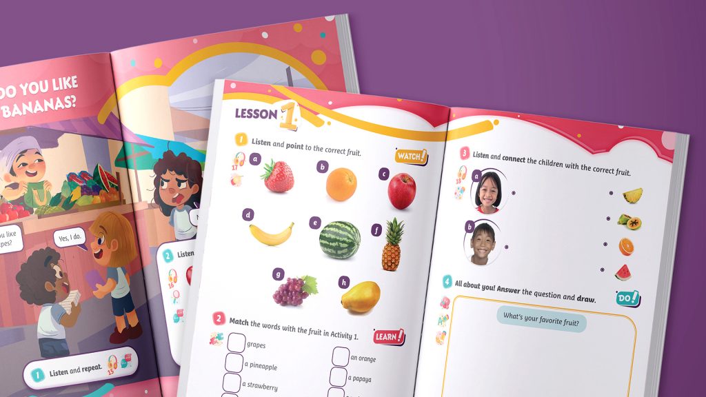 Além dos livros direcionados ao ensino de inglês de crianças de 6 a 12 anos, do 1º ao 5º ano do Ensino Fundamental, a coleção também conta com um banco de jogos e questões online.