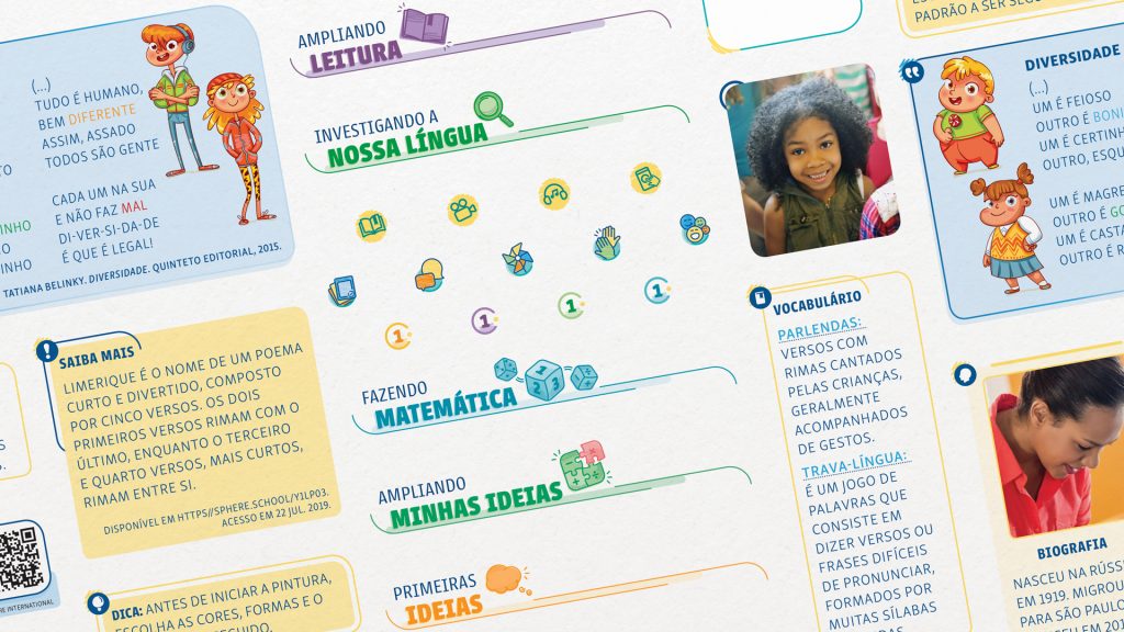Como resultado, desenvolvemos todos os novos materiais didáticos dos segmentos “Early Childhood” e “Elementary School”, com atenção aos detalhes, estratégias de aproveitamento gráfico, acabamentos nobres, qualidade e resistência para uso intenso, oferecendo aos alunos uma lúdica e eficiente experiência visual.