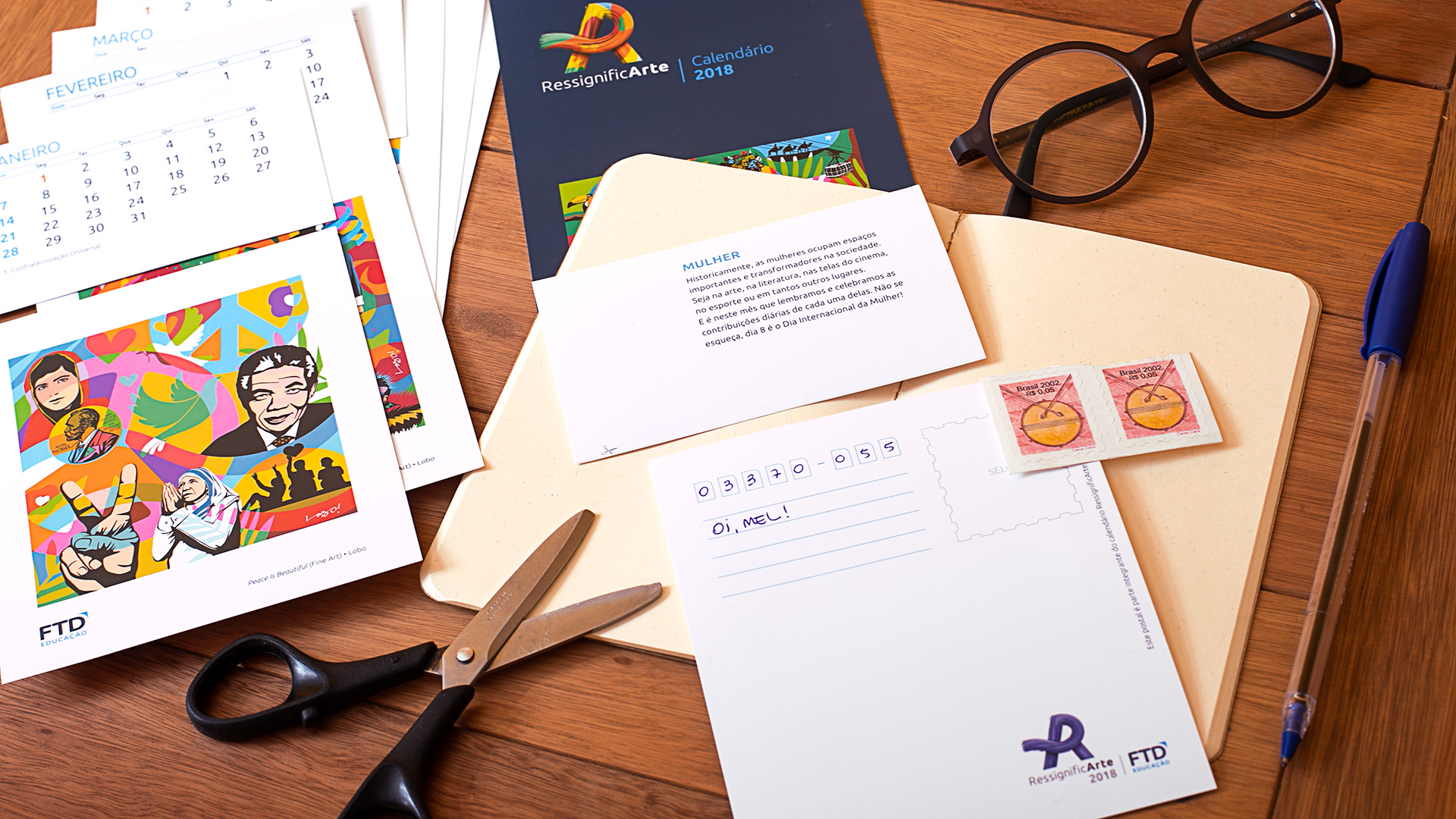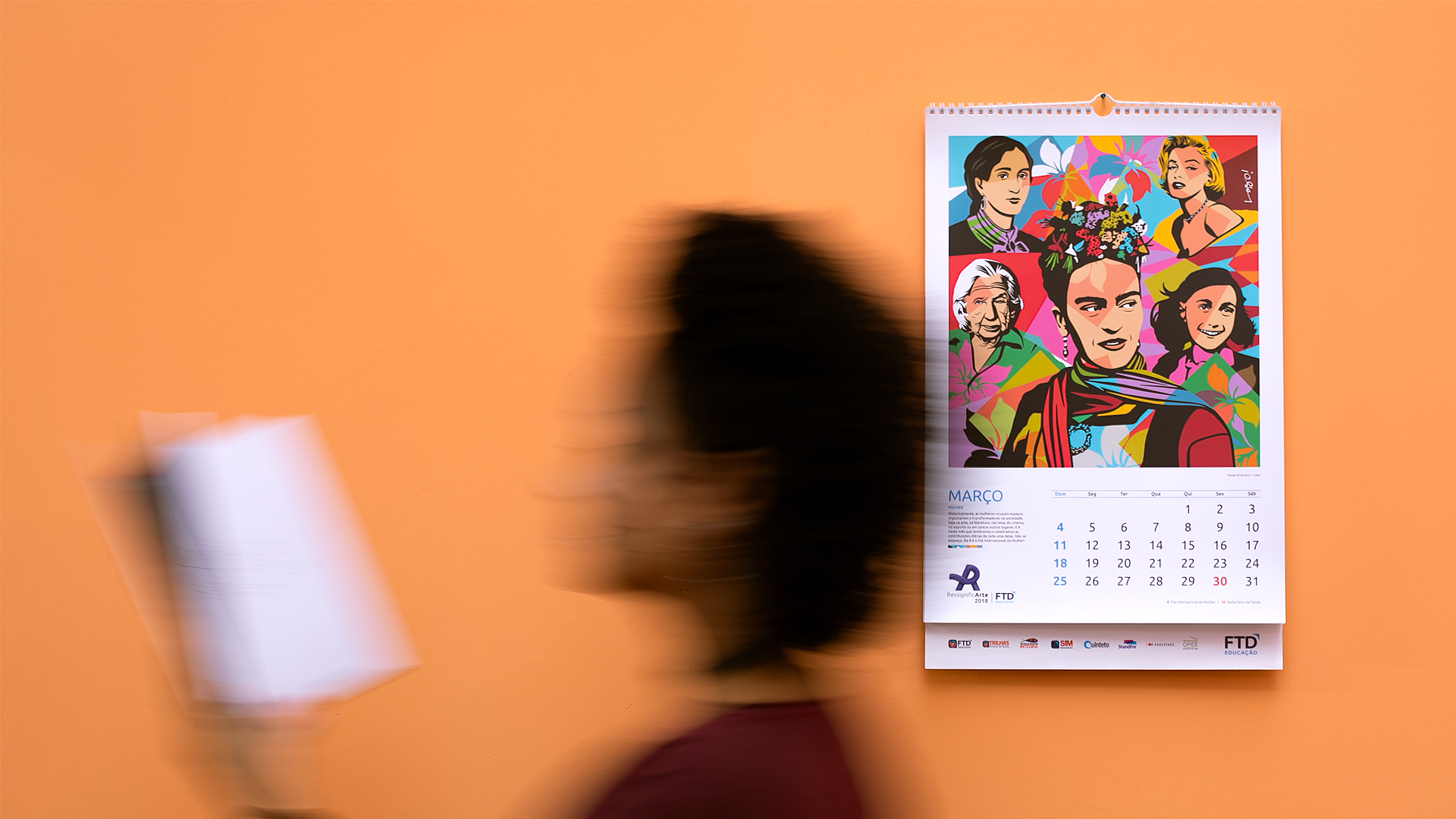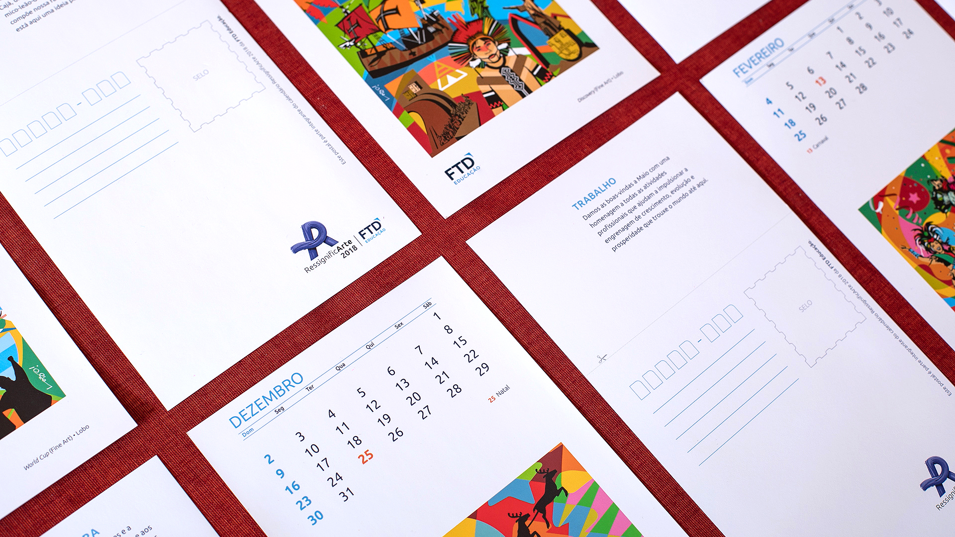 RessignificArte é um projeto da FTD Educação que entrega um novo propósito para um acessório antigo de mesas e paredes: o calendário. A ideia foi transformar a percepção das pessoas sobre ele. Será que, além de informar dias, semanas e meses, ele não pode levar arte para o dia a dia? Seria possível ter novo destino após seu uso?